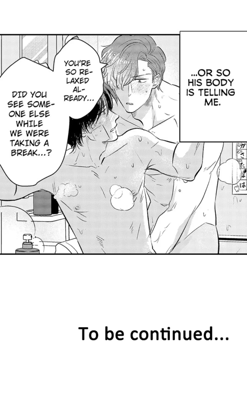 I'm posting a lot of panels of that one shower scene because it was cute to see Kaji praising Fukami and letting Fukami take care of him, instead of clinging to the cool dominant persona he seemed to always put up. It's bittersweet to me that he's accepting he wants to be with Fukami while at the same time knowing Fukami probably won't want him like that. I realize writing this next to a panel of Fukami with Kaji's dick in his mouth is hilarious but genuinely what do you want from me.